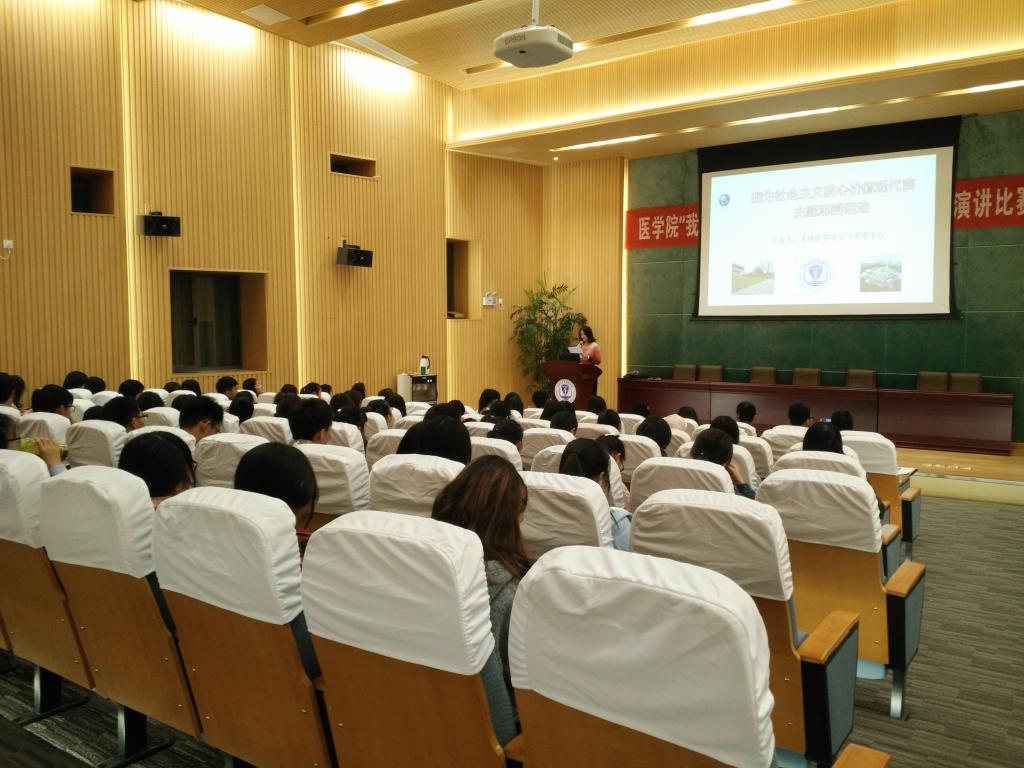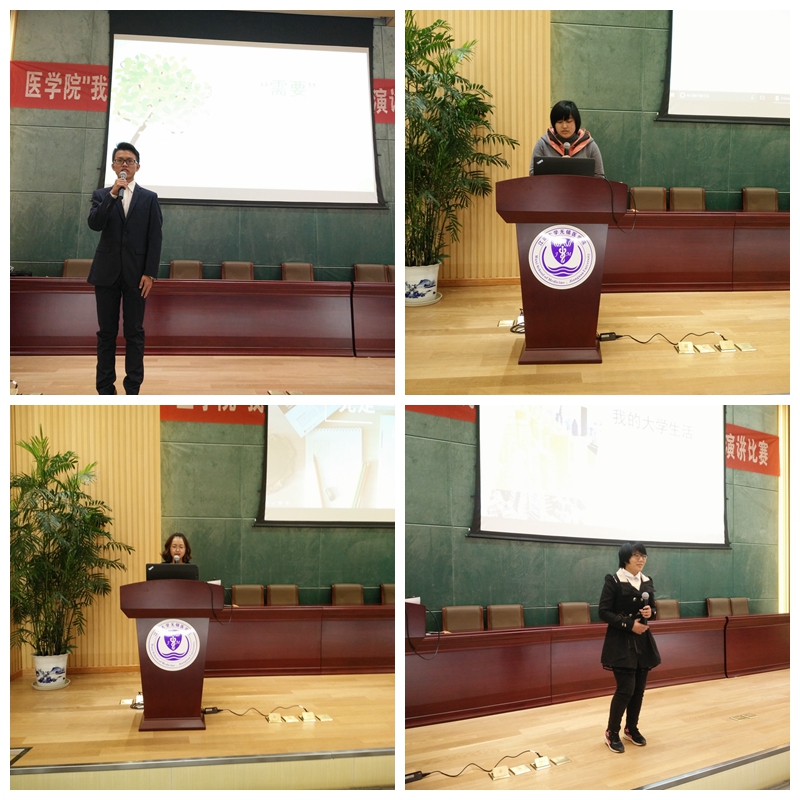 此次演讲围绕“我的大学初心”、“我的大学生活”、“我的大学目标”为主题展开。活动伊始,主持人介绍了活动目的及评分标准。紧接着,选手按照抽签顺序依次上台演讲。首先上台演讲的是来自临床1501班的王远犇同学,他用简简单单的几句话语,几本书、几个朋友、几个例子,将他的主题“需要”表现得淋漓尽致,同时还和台下进行了互动,赢得了大片的掌声。接着二号选手的“不忘初心、不负青春”、三号选手的“渔舟星火,梦圆江南”……一场场精彩绝伦的演讲,一次次触动人心的表达。不论是不忘初心的最初梦想,还是不浪费分秒的坚定决心,抑或是先定一个小目标的不懈动力……这是每位选手们的大学初心,这是他们的精彩生活。临床1501班的选手王慧萍说:“当初我们因为一场考试离开了并肩作战了三年的战友来到梦寐以求的大学,刚来到这到处碰壁,寂寞与孤独,但大学里可以拥有一群可爱的同学,只要自己努力也会有感动,有幸福……”他们的大学生活、他们的大学目标、他们的大学初心,经由他们的声音一一流淌在在座老师和同学的心中……精彩总是转瞬即逝,很快15位选手的演讲全部结束。