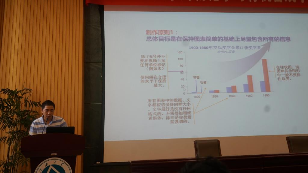 会议伊始,主持人魏明霞简要介绍了会议的目的及主讲人易坤学长的经历。作为本次活动的主讲人,易坤学长分别从新闻写稿、PPT制作以及活动档案策划三方面展开了培训内容。在新闻稿部分,他向大家介绍了新闻六要素并给予案例剖析,点明了新闻客观性、及时性、真实性、简洁性的特点,特别提出了新闻稿在称谓、时间、地点、发言上的注意事项。在PPT制作方面,学长指出要“以简洁的话语,辅以精美的图片,向观众展示最核心精华的内容”。提问环节,易坤学长就参会人员提出的“如何制作企划书”“总负责人与各组成员间的责任承担”等问题给予详细解答。会议在同学们热情的掌声中结束。