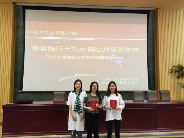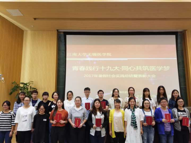 9月21日,伟德victor1946无锡伟德国际victor1946在伟德国际victor1946报告厅C101召开了“青春践行十九大•同心共筑医学梦”2017年暑期社会实践总结暨表彰大会。院分团委书记林丹老师,分团委副书记陈碧云老师,分团委学生副书记李思原和院学生会副主席李娜娜及11个社会实践团队的负责人和代表参加会议。2017级全体学生到场聆听。