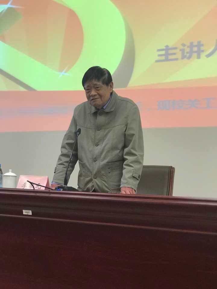 李宗元老师引用了习近平总书记在北京大学师生座谈会上的一段讲话“‘恰同学少年,风华正茂’,有老师指点,有同学切磋,有浩瀚的书籍引路,可以心无旁骛求知问学。此时不努力,更待何时?”告诫大家珍惜大学时光,努力奋斗。随后,老人又向我们强调了树立高远目标的重要性,同时引用高尔基“一个人追求的目标越高,他的才能发挥的就越充分,他对社会的贡献也就越大”。十九大给我们广大青年提出新的“志存高远”的要求,李宗元老师强调作为大学生,“志存高远”后还要有为实现目标不怕吃苦的精神,希望广大同学们在中国梦的伟大实践中创造自己的美好人生。