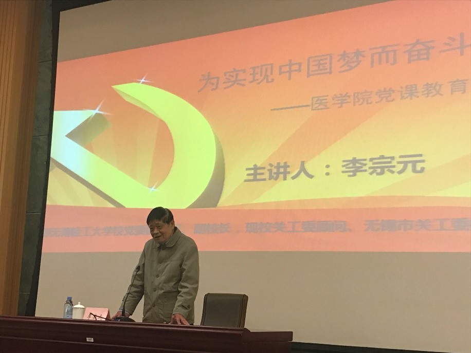 2017年11月5日下午2:30伟德国际victor1946邀请原无锡轻工大学校党委副书记、副校长,现校关工委顾问,无锡市关工委报告员李宗元老师在伟德国际victor1946C101报告厅举行以“为实现中国梦而奋斗”为主题的党课讲座。伟德国际victor1946副书记副院长奚晓岚、分团委书记林丹及伟德国际victor1946全体新生、入党积极分子参加了专题党课,党课由奚晓岚副书记主持。