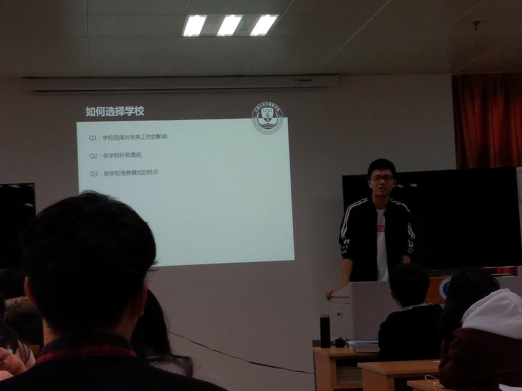 会议伊始,班长陈新杰同学代表同学们对奚老师和五位学长学姐的到来表示欢迎。接下来由陈宇潇学长、全润泽学长、王政学姐就三个不同方向为大家分享他们考研保研的经验。陈宇潇学长用“三个如何”的问题解读在考研的时候如何选择院校,选择学硕或是专硕,他的解读为同学们指明了考研大方向,使得在座的同学能够结合自身实际去选择奋斗目标;全润泽学长则就科室的选择、导师的选择方面给予全面的解答,并对推免过程做了详细的分析,解决了同学们对于报考专业选择的困惑;王政学姐则更加侧重于分享自己的考研经历,鼓励大家要树立信念,并一直坚持下去,同时也分享了当时自己的考研技巧,在零碎时间的利用、复习进度的规划、复习时间的分配等方面给了同学们很多建议。在经验分享结束后,三位学长学姐更是就同学们所提出的疑惑进行一一解答。