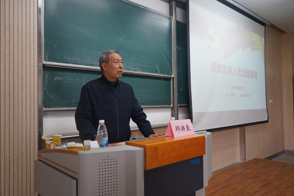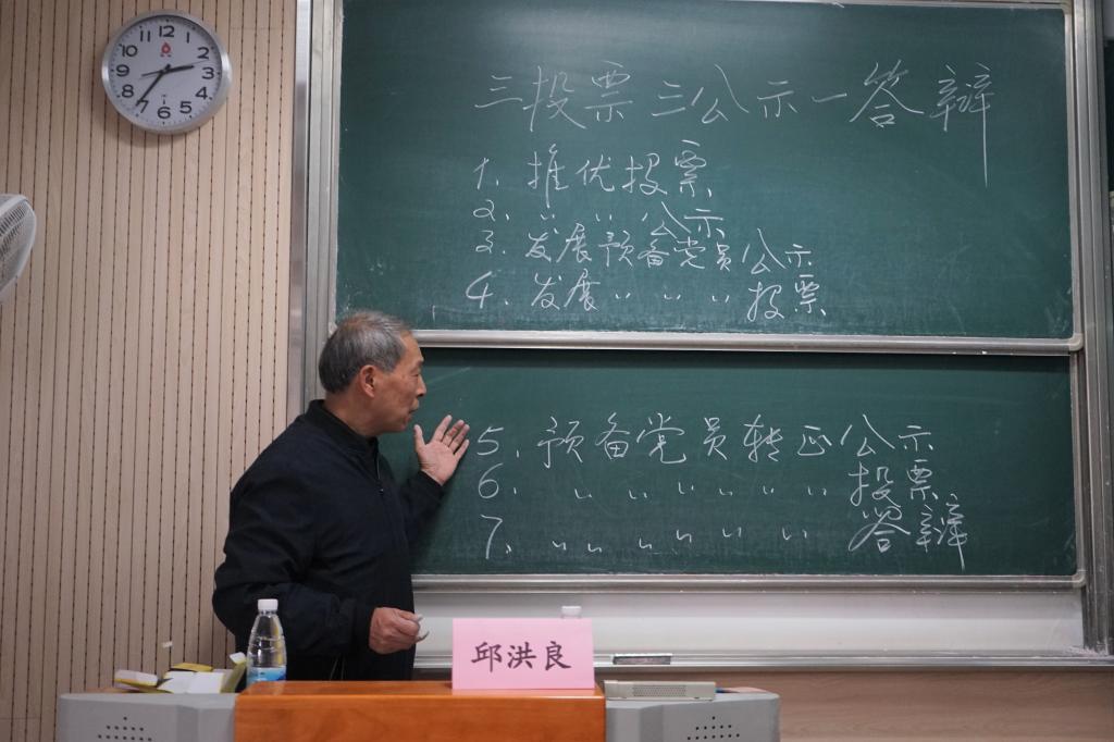 图1.邱洪良老师进行 党员发展入党流程培训(1)