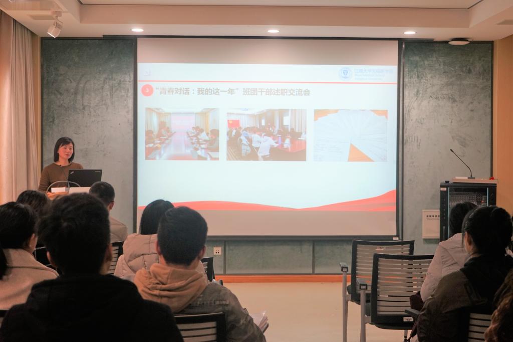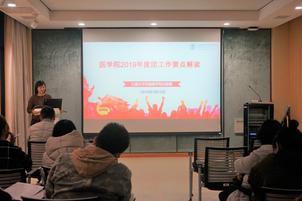 紧接着进行会议第二项议程,林老师向大家解读了《伟德victor1946无锡伟德国际victor1946分团委2019年度重点工作要点》。她强调,2019年全团已树立了大抓基层的鲜明导向,并将基层组织的思想引领工作列作全年的重点工作。学院分团委将通过加强理想信念教育、加强基层组织建设、加强思想引领工作项目和阵地建设、服务团员青年需求、当好桥梁反映青年时代声音、推进“第二课堂成绩单”建设、深化大学生创新创业服务、广泛开展社会实践和志愿服务工作、搭建和完善青年成长和展示的平台、加强对学生会组织和研究生会的指导等10个要点,切实保持和增强各基层团支部的政治性、先进性、群众性,团结带领广大团员青年积极建功学校学院建设。