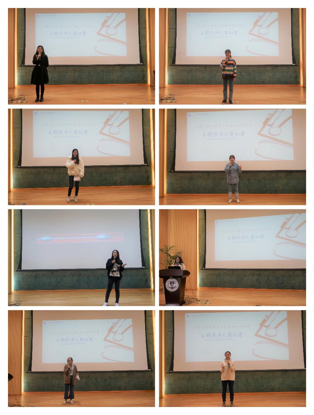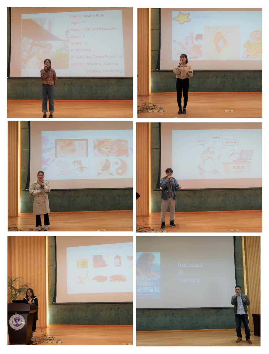 本次比赛共有34名选手参赛。在主持人介绍比赛规则后,参赛同学按照抽签顺序依次上台进行自我介绍和主题演讲,演讲内容围绕“health in China”展开。选手们用英语阐述了对主题的理解,在结合专业特色的同时,又聚焦中国国情与时代发展,其中也不乏对当今热点以及国家政策方针的解读。在短短几分钟的时间内,参赛选手用刘畅的语言深化演讲主题,向现场观众们展现了当代医学生的风采。