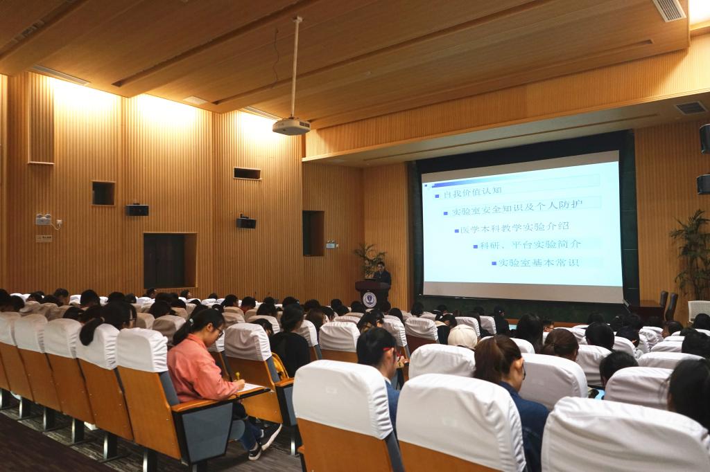 本次会议首先安排了实验室安全教育培训环节。程建青老师从实验室基本操作常识、医学本科教学实验、科研及平台实验等方面向大家介绍了相关的安全知识与注意事项,从个人防护层面强调了遵守安全准则的必要性和重要性。他指出,医学生需要付出大量时间在实验室进行研究工作,必须最大程度地降低实验室危险指数。首先要了解实验室潜在的危险,牢固树立安全意识,遵守实验室规章制度,对实验环境及实验室安全防护设施充分熟悉;其次,要谨遵老师指导,养成良好实验习惯,做好实验准备工作;在实验过程中不独自工作,按正确步骤操作;实验结束后,不逗留过夜;发现问题时要及时汇报或进行有效处理;最后,实验时要保持良好稳定的个人情绪,集中注意力,重视实验细节,尊重自我和他人生命,有效地规避实验室潜在或突发的危险。