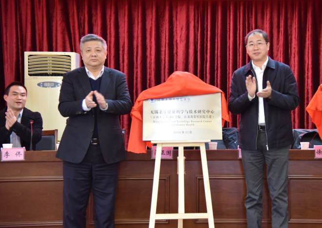 徐岩副校长与夏春青主任为无锡老年健康科学与技术研究中心揭牌