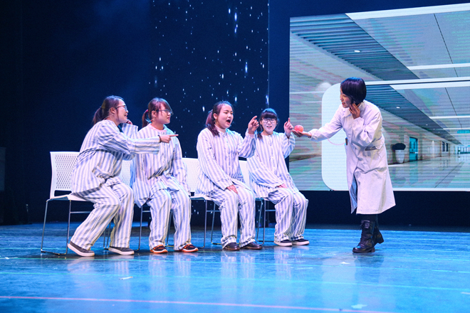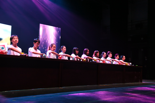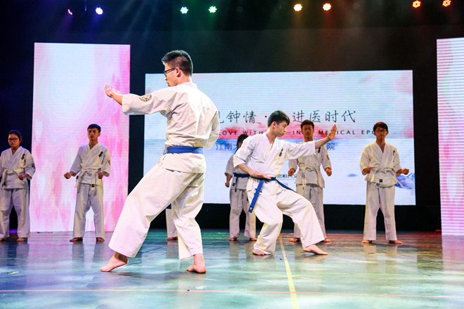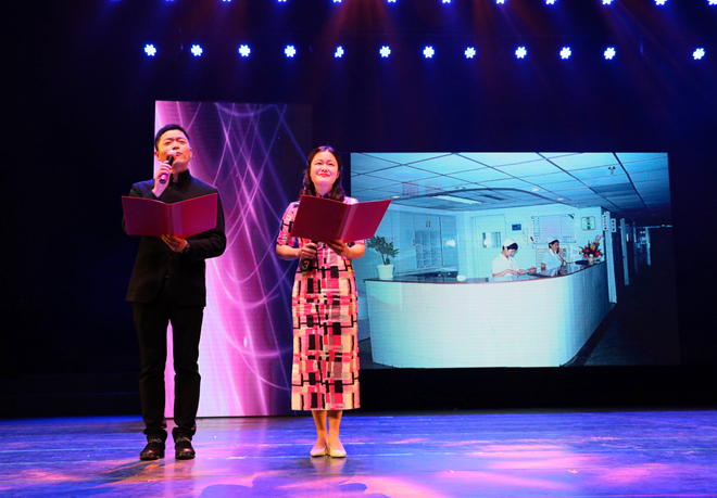 温馨又不乏俏皮的介绍之后,杯子歌《cups》引爆全场激情。光影交错,歌声清扬,观众们很快融入了晚会的氛围。附院带来的舞蹈《洗手舞》步伐欢快,无时无刻不在带动着观众们的热情;小品《手机综合症》爆笑不断,剧情跌宕起伏;双截棍、空手道、太极的终极一战,结合动感青春的热血,迸发出无限激情;《父亲》小合唱,用歌声表达了对父亲的感恩与祝福,催人泪下,感染了现场所有的观众;优雅舒缓的乐器合奏、动感青春的舞蹈,赢得观众的连连掌声。伟德国际victor1946老师们也倾情登台献艺,歌曲串烧、护理系合唱、基础医学系大合唱等,点燃现场活力无限。古典走秀的翩跹幻影,俏皮儿童的欢快天真,书记院长的经典演绎,每分每秒都掀起着视觉狂潮。期间,吴正国书记和陈永泉院长带领全体行政人员向现场的全体师生及医护人员送出诚挚的祝福,并祝愿伟德国际victor1946和附属医院能够携手共同奋进。之后,附属医院带来的《筑梦附院人》诗朗诵等节目展示了医护人员神圣的使命;《药师在我身边》小品,《和你一起看夕阳》舞蹈更是展示了他们别样的风采。