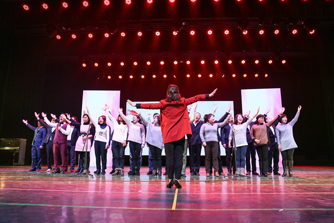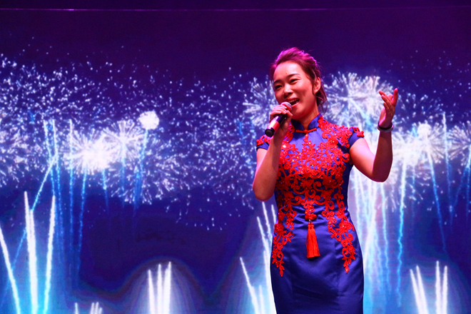 晚会最后,院长助理奚晓岚老师深情独唱一首《今夜无眠》,使得现场的氛围格外地高涨,全体演职人员、观众都沉浸在当晚热烈的气氛之中。