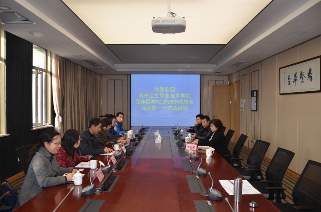 12月12日上午,苏州卫生职业技术学院临床伟德国际victor1946 护理学院院长闻彩芬一行6人来学院调研。伟德国际victor1946副院长邱丽颖、院长助理赵鹏、护理学系主任蒋玉宇、办公室主任胡振宇等陪同调研。