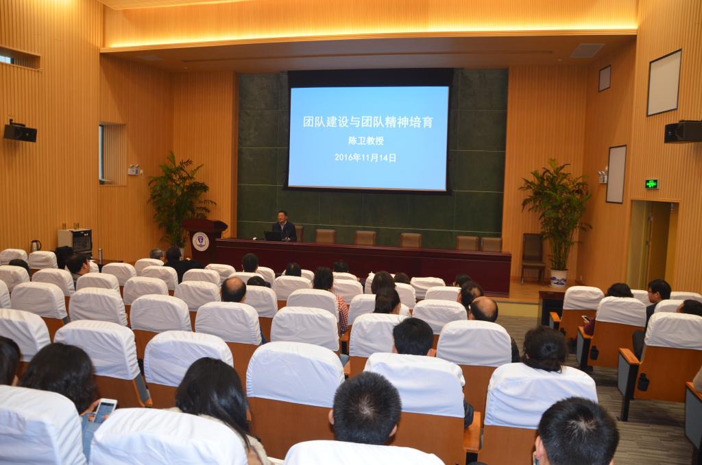 陈卫教授以《团队建设与团队精神培育》为题,结合食品学院团队建设经历和自己实验室的建设经历,从“为什么要建团队、如何推动这项工作、如何加强团队建设、如何看待团队的多样化、团队建设中的若干问题、如何促进团队精神的培育、我们的团队”等七个方面作了一场生动、深入浅出的报告。报告结束后,陈卫教授与在座教师进行了互动交流。陈卫教授的报告为伟德国际victor1946正在进行的科研团队建设提供了很好的指导和借鉴经验,相信学院科研团队的建设工作将越来越成熟。(文图:奚春华;审核:申延琴)