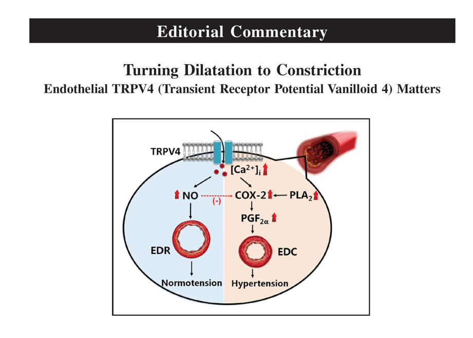 Hypertension杂志同期选择该研究结果发表了题为“Turning Dilatation to Constriction: Endothelial TRPV4 Matters”的Editorial Commentary(编辑部评论)。