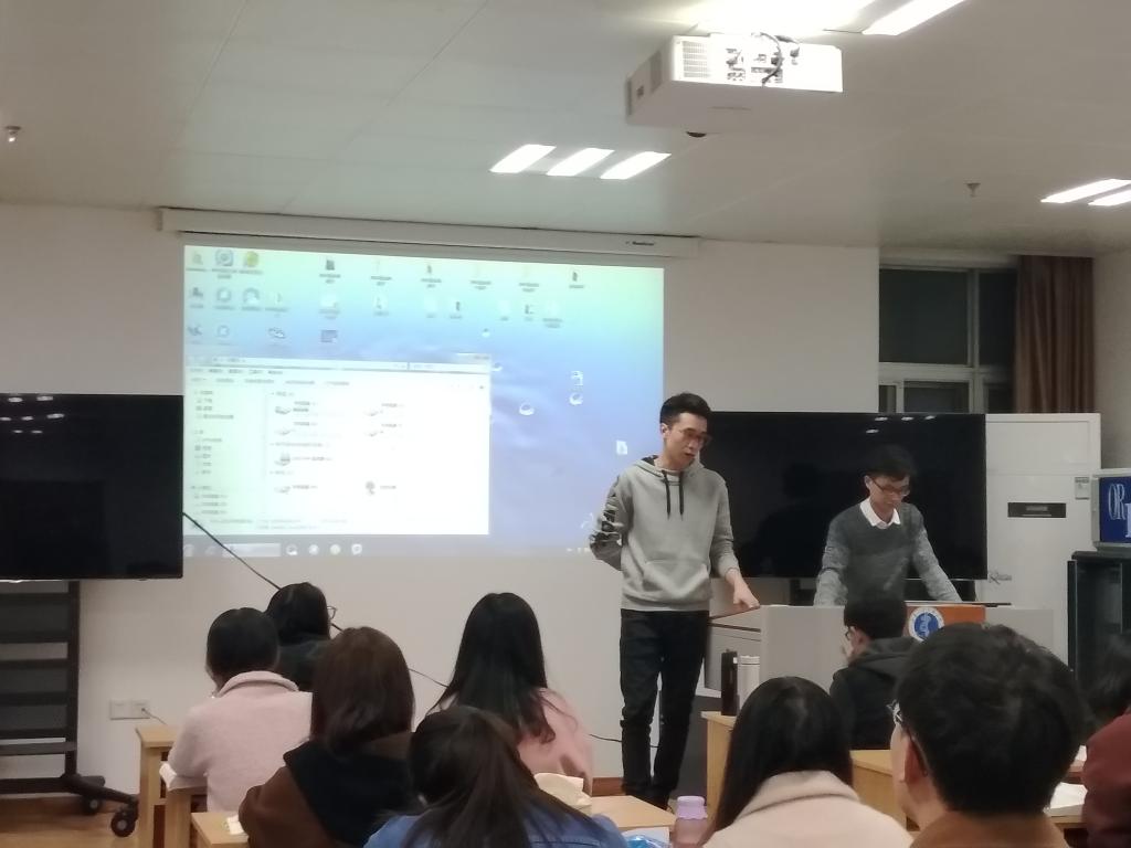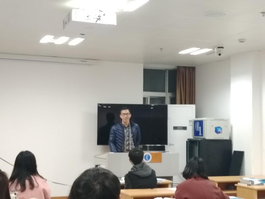 会议伊始,班长陈新杰代表同学们欢迎两位班主任及王哲学长的到来。随即班主任发言,并直切此次班会主题:了解新学期入学情况和考研交流会。吴郁老师就他本人的考研经历和大家进行分享交流,提醒同学们要尽早明确自己的目标,对自己的未来有一定的规划。