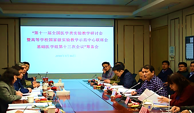 2018年3月16日由高等学校国家级实验教学示范中心联席会基础医学组(简称“基础医学组”)主办、伟德victor1946(无锡)伟德国际victor1946承办的“第十一届全国医学类实验教学研讨会暨高等学校国家级实验教学示范中心联席会基础医学组第十三次会议”(简称“年会”)筹备会在伟德国际victor1946106会议室召开,来自“基础医学组”组长(南方医科大学董为人)、副组长单位代表(安徽医科大学汪思应、南京医科大学陈峰、中南大学何晓凡、中山大学胡黎平、山东大学周亚滨)、《南方医科大学学报》主任、基础医学组秘书、基础医学组下属3个联盟负责人、承办方伟德国际victor1946代表伟德国际victor1946院长助理兼基础医学系主任陈雪、院长助理兼实验教学中心主任冯磊、5家企业代表等共21人参会。会议由吴宁秘书主持,与会代表就“年会”相关的一系列事宜展开热烈商讨并做出相关决定。最后,董为人组长总结发言,感谢大家为办好年会所作的努力,并表示在各方的努力下,齐心协力,相信“年会”一定会顺利圆满召开,并预祝大会成功举办。