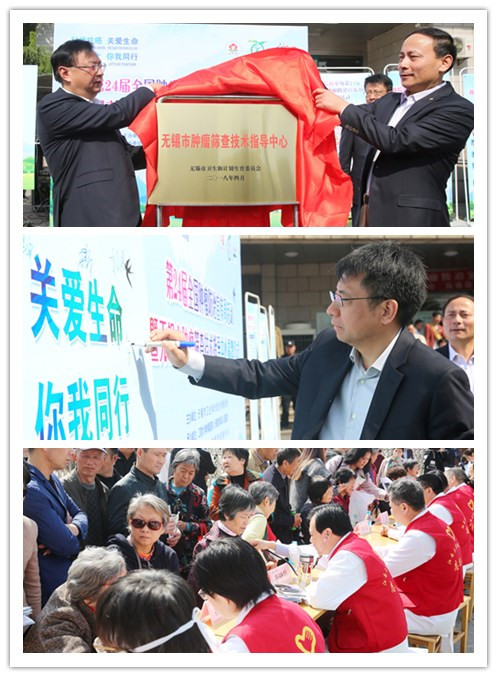 随后,市卫计委谢寿坤主任和市科协陆伟中副主席共同为“无锡市肿瘤筛查技术指导中心”揭牌。