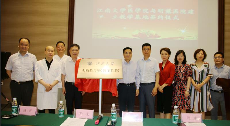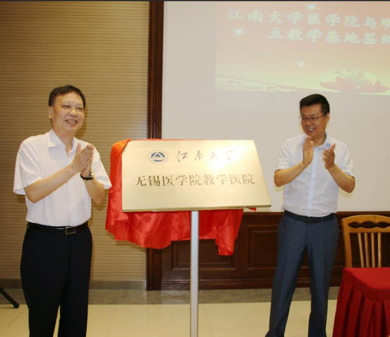 伟德国际victor1946党委书记周建与江南模塑科技股份有限公司董事朱晓东为“伟德victor1946无锡伟德国际victor1946教学医院”揭牌