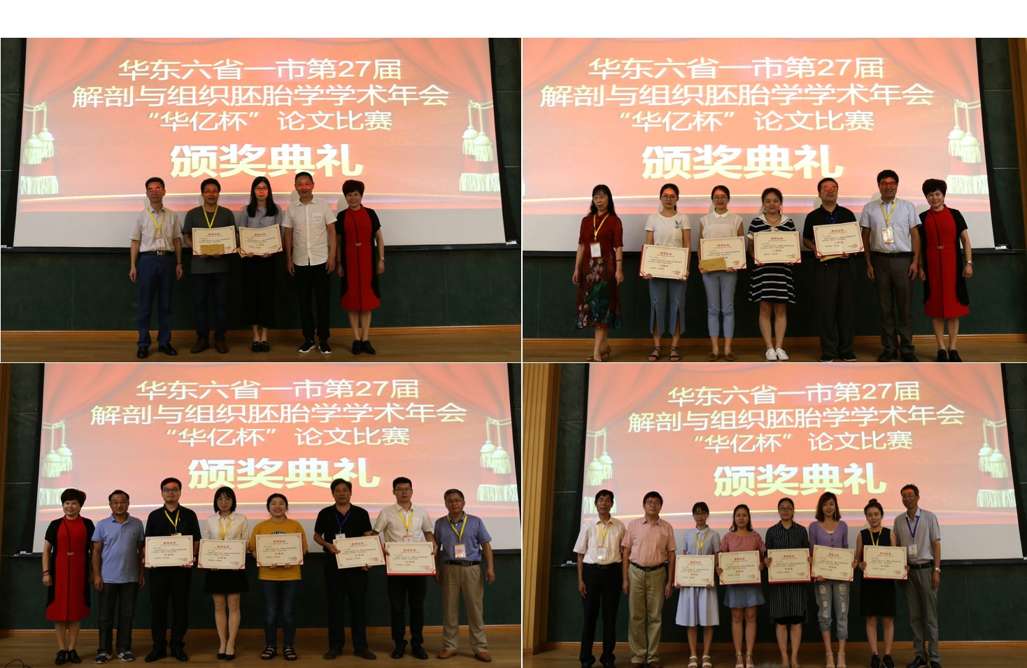 大会报告阶段,刘树伟教授强调了在科学研究过程中创新的重要性;张励才教授直诉了科学研究需要静下心来坚持与坚守;张晓明教授从个人研究经历出发,勉励年轻人注重文献,注重科学问题来进行科学研究;李文生教授着重于脑科学的研究,指出脑库的建立在研究过程中尤为重要;贾雪梅教授的报告让全场观众体会到教学构思、教学设计、加强教学基本功、提高教学质量的重要性;李哲教授的报告让大家领悟到形态学的教学要结合多种思维去教学;优秀青年老师则分享了他们的最新科研进展。16日下午的“华亿杯”论文比赛在伟德国际victor1946C101与A309两个会场举行。来自华东地区各高校的青年教师和研究生将自己近年来的研究成果逐一展现,博得在场评委的一致好评。最终,论文竞赛评选出一等奖2名、二等奖4名、三等奖5名、优秀奖5名。颁奖仪式结束后,江苏省解剖学会理事长、南京大学韩晓冬教授和复旦大学李文生教授分别作总结、承办下届年会发言。向参会的所有嘉宾发出邀请:明年八月,上海见!