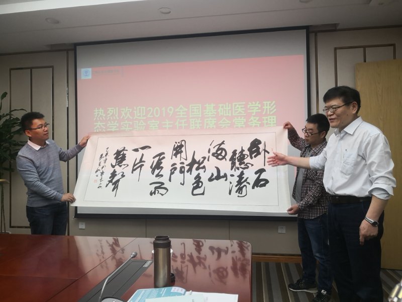 会议开始前,马保华会长发表了简短致辞,对伟德国际victor1946承办本次会议表示感谢,并代表理事会赠送给伟德国际victor1946墨宝一幅。基础医学系主任吴国胜代表伟德国际victor1946接受了馈赠墨宝,并对各位专家的到来表示热烈欢迎,希望理事会各位专家继续对伟德国际victor1946学科建设发展给予指导和帮助。会议结束后,马保华会长一行参观了人体科学馆和形态学实验室,详细了解了伟德国际victor1946形态学学科建设和发展情况,对伟德国际victor1946形态学丰富的教学资源、先进的教学条件和“小班化、国际化、精英化”的培养模式给予了充分的肯定。