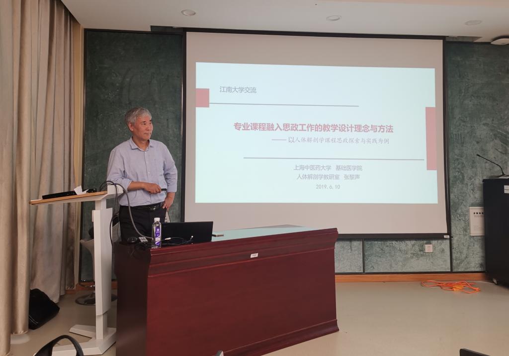 6.10号下午,校教师卓越中心-伟德国际victor1946教师发展中心在伟德国际victor1946C108学术报告厅举行联办活动,邀请国内著名课程思政教育专家张黎声教授进行题为“专业课程融入思政工作的教学设计理念和方法”的讲座。张教授首先介绍了他在人体解剖学授课中进行课程思政的相关探索,展示了他是如何结合课程特点,进行整体设计并最终实现“以汝秋叶之静美,唤吾夏花之绚烂”的思政教育效果。紧接着,张教授对课程思政的“概念和内涵”作了进一步展开,并介绍了具体的专业课程融入思政工作教学设计理念和方法。张教授认为,课程思政要“主动设计”、“加强引导”、“注重体验”和“融合特色”,最终实现“润物无声”。