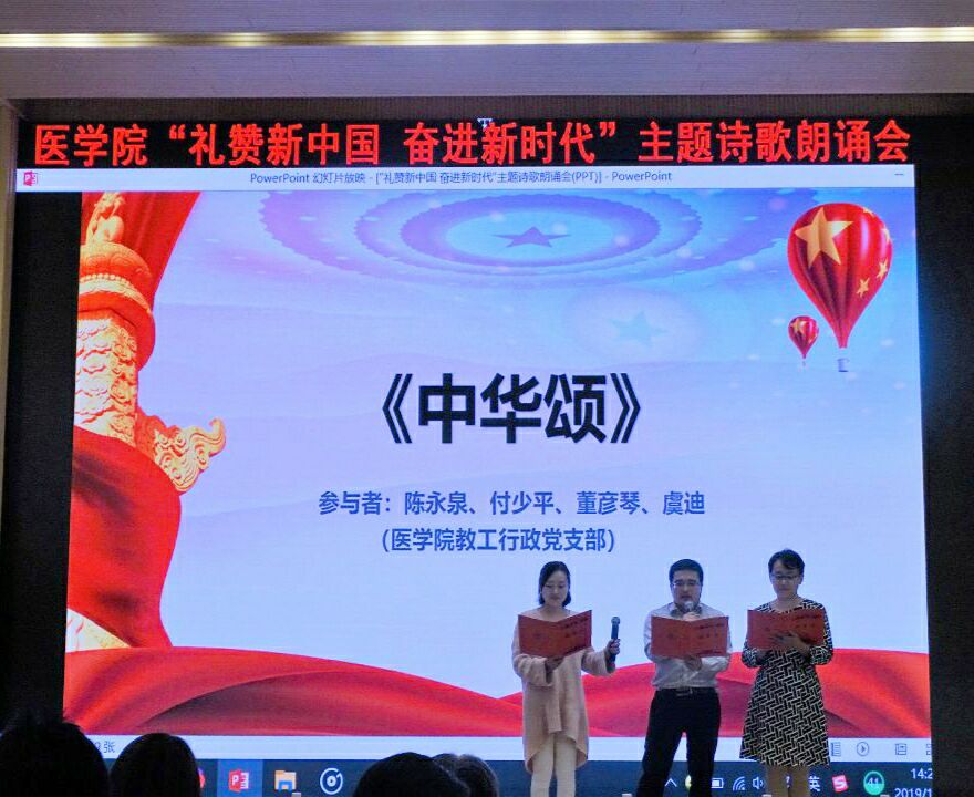 为认真贯彻落实学院关于“不忘初心、牢记使命”主题教育专题学习,增强思想政治教育,伟德国际victor1946关工委、伟德国际victor1946教工行政党支部于10月25日下午在C101报告厅组织开展“礼赞新中国,奋进新时代”主题诗歌朗诵会。伟德国际victor1946各党支部均积极参与,抒发对党的热爱和感恩之情。朗诵会由研究生党支部王丹慧同学主持。
