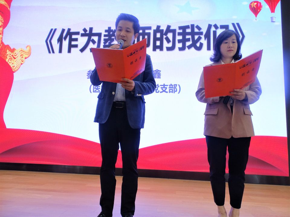 朗诵会上,各位党员同志朗诵激情澎湃、热情洋溢。作为新时代的共产党人,我们要以时代楷模为榜样,不忘初心、牢记使命,勇于担当。我们伟德国际victor1946全体师生将为建设成在若干医学领域国内领先、学科特色项目的研究型伟德国际victor1946继续奋斗,为祖国的医药事业发展做出更大的贡献,把握新时代,走好新征程!