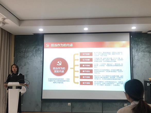 10月15日下午,伟德国际victor1946党委副书记、副院长奚晓岚以《勇担当,善作为,努力奋进新时代》为主题讲授专题党课,她从“什么是担当作为”、“担当作为是党员的基本素质”、“为何强调要担当作为”、“新时代党员干部如何担当作为”等四个方面深入浅出地解读了新时代党员的担当与作为。她强调,新时代开启新征程,新征程呼唤新担当新作为,全体党员要不忘初心、牢记使命,自觉加满油、把稳舵、鼓足劲,全面贯彻落实习近平新时代中国特色社会主义思想和党的十九大精神,把实干担当作为讲政治的根本要求,自觉做到勇挑重担、冲锋在前,以行动彰显实干,以实干扛起担当。
