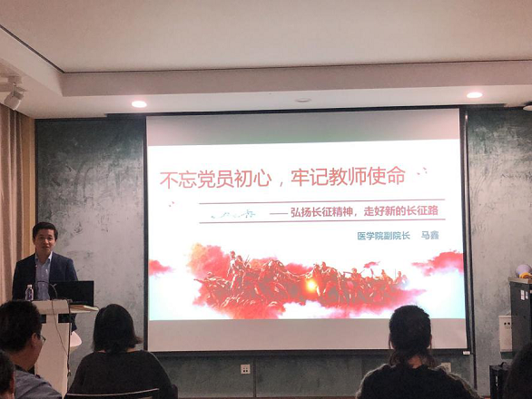 10月30日下午,伟德国际victor1946党委委员、副院长马鑫以《“不忘党员初心,牢记教师使命”——弘扬长征精神,走好新的长征路》为主题讲授专题党课,他带领全体师生党员围绕“长征的历史”、“长征精神的意义”、“不忘初心、走好新的长征路”等三个方面回顾了长征的历史,分析了长征的精神意义,提出了新时代新长征路的深刻内涵。他强调,我们要牢记党为人民谋幸福,为民族谋复兴的初心和使命,要牢记教师教育的初心和使命。他结合医学教学与医学研究的实际,通过自身实例分析,生动地向全体党员阐述了医学人如何走好医学 “长征路”,他鼓励伟德国际victor1946的师生要发扬不怕苦、不怕累的长征精神,记住长征没有终点,要实现研究型伟德国际victor1946的奋斗目标,还有很长的路要走、有无数的“雪山”“草地”要过。只有我们想当年的红军战士那样,忠诚于党、不忘初心、团结一致、奋勇拼搏,才能在我们的教育之路、科研之路上取得胜利、创造辉煌!