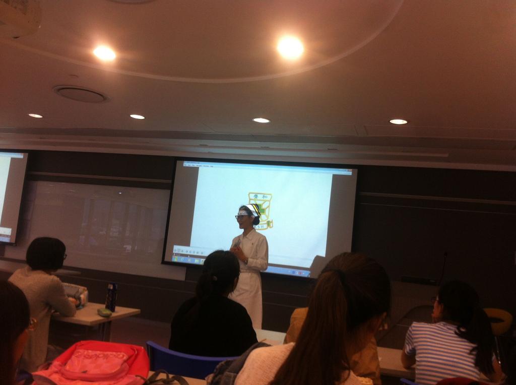 图1.Sharing session,我们与英国护理生们进行互访,了解英国护理概况。在这个过程中,我们的口语也得到了大大的锻炼哦~