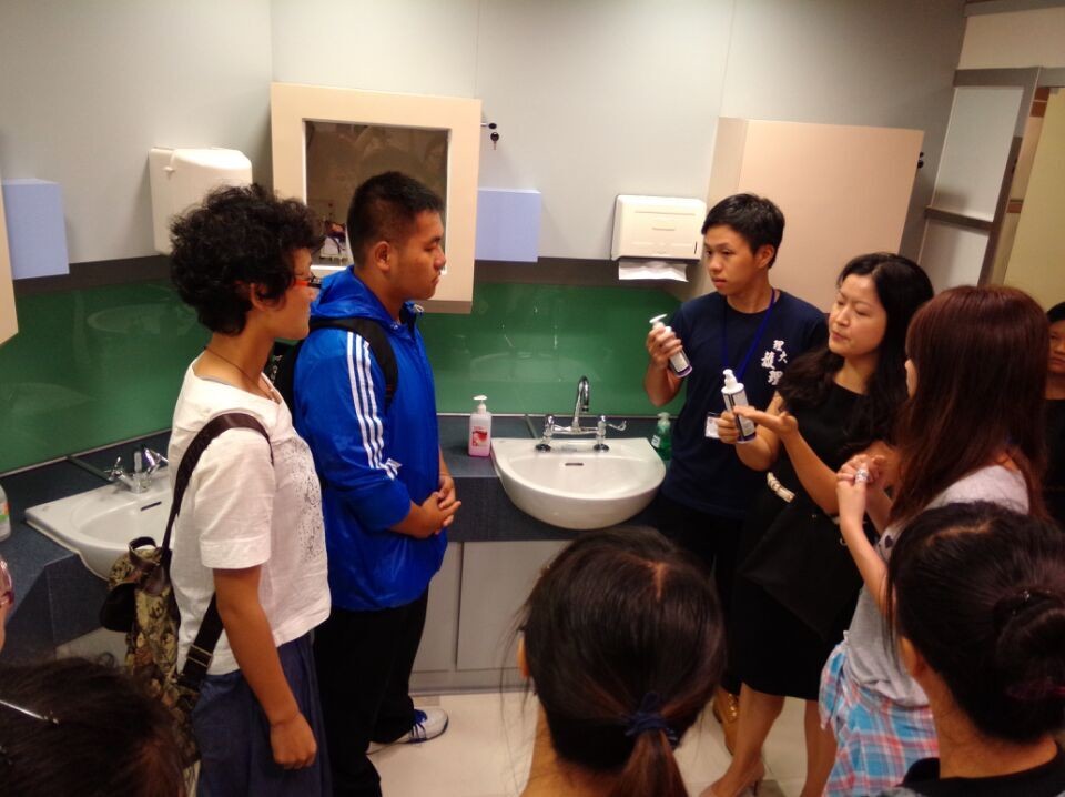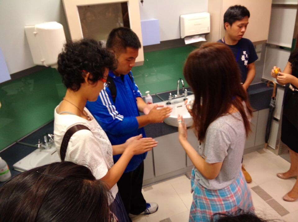 图4.我们游学团队的同学主动提出要亲自体验七步洗手法,这样理论与实践相结合的经历一定会让我们的记忆更加深刻!