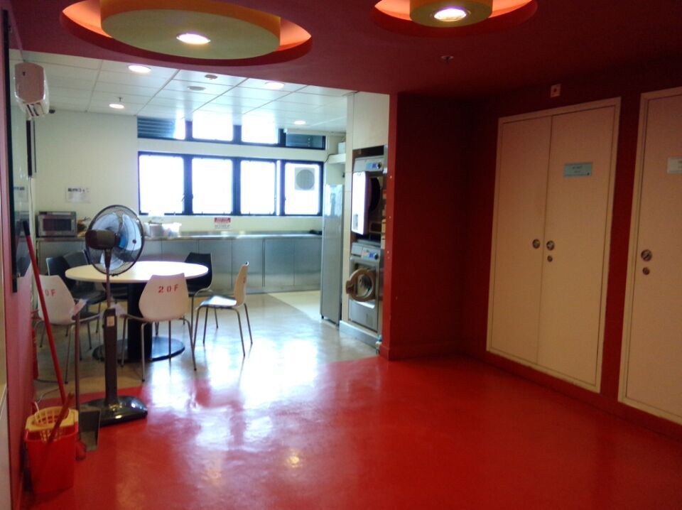 图6.宿舍楼的公共区域干净明亮,有厨房、洗衣机、冰箱、小餐桌等,大家都对接下来的生活充满期待~~