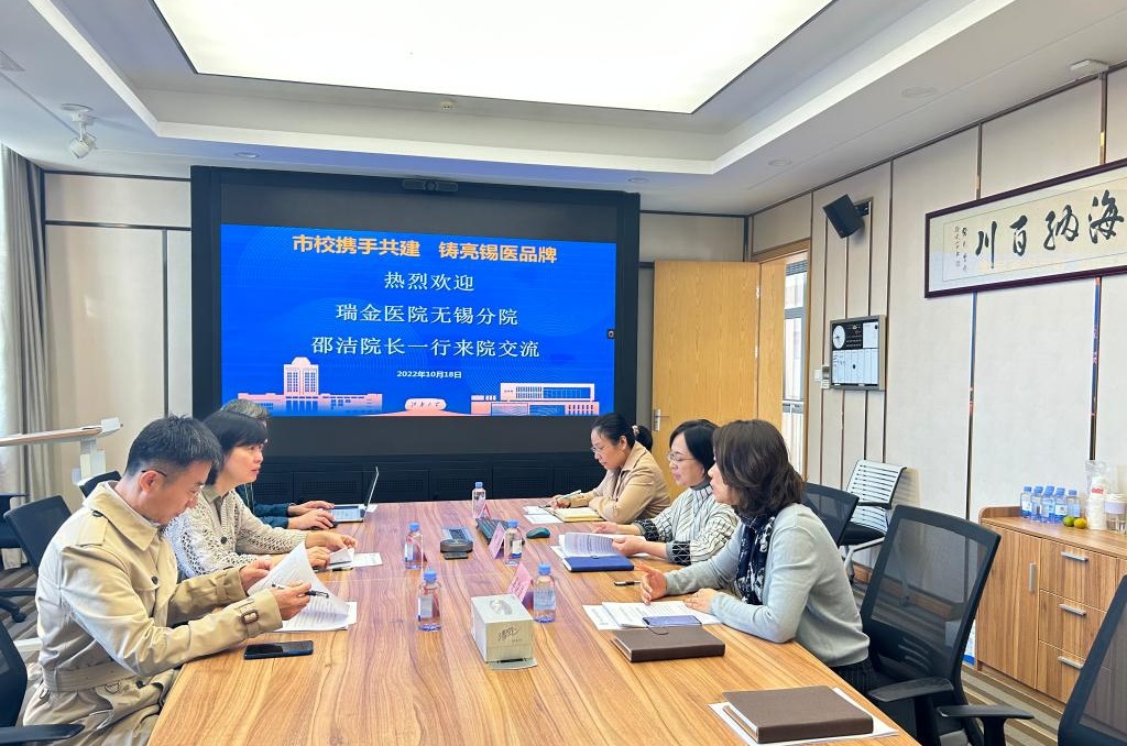 10月18日下午,瑞金医院无锡分院院长邵洁、教学副院长邓漾及院办主任叶光明一行来访无锡伟德国际victor1946。伟德国际victor1946党委书记向琪、党委副书记兼副院长奚晓岚、教学秘书孙洁云等参加会议。
