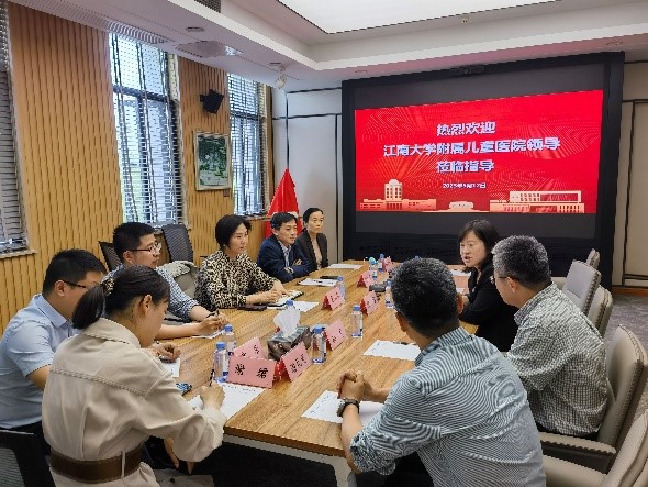 5 月12 日下午,伟德victor1946附属儿童医院副院长朱立红、科教处负责人郁志伟、人事处负责人满祎、科教处副处长顾晓虹、儿科实验室副主任章乐、护理部主任助理谢珺一行到伟德victor1946无锡伟德国际victor1946座谈交流。无锡伟德国际victor1946副院长孙宁、陈雪、柴高尚,院长助理潘礼龙,护理系主任蒋玉宇共同参与座谈交流。