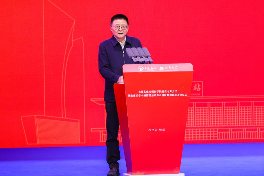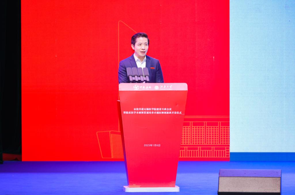吴正国在致辞中对无锡市委市政府长期以来给予学校办学发展的大力支持表示衷心感谢。他指出,“十四五”期间,伟德victor1946紧扣“市校合作共建一流大学”和市校“合力推动科技成果转化”两个目标,在重点学科、人才队伍、科技创新、服务产业、文史传承等方面取得显著成绩。特别是无锡伟德国际victor1946和附属医院联动获批临床医学博士点,建立国家、部委级科研平台,为无锡医疗卫生事业发展能力提供有力支撑。吴正国表示,伟德victor1946将坚持更高站位谋划、发挥交叉学科优势,在医教研协同领域推动人才互聘、资源共享,重点实施卓越医师培养,助力无锡医疗卫生事业和生物医药产业创新发展。