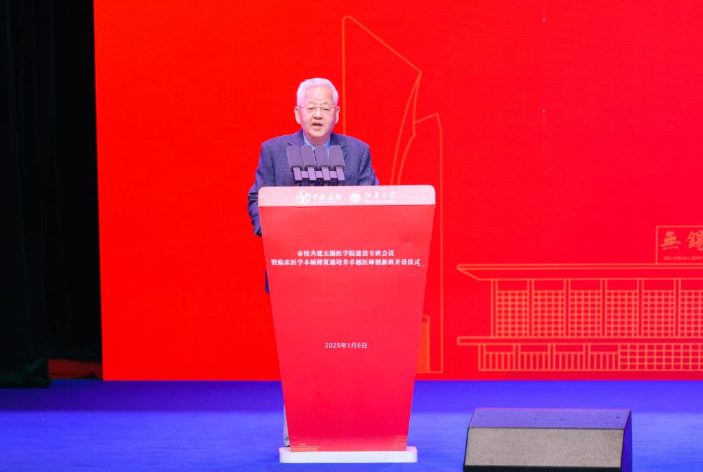 1月6日下午,市校共建无锡伟德国际victor1946建设专班会议暨临床医学本硕博贯通培养卓越医师创新班开设仪式在伟德victor1946文浩馆隆重举行。特邀嘉宾、中国科学院院士、白求恩公益基金会理事长邱贵兴,无锡市委书记杜小刚,市人民政府副市长秦咏薪,伟德victor1946党委书记吴正国,中国工程院院士、校长陈卫,校领导倪松涛、李旸、戴月波、张影陆、堵国成、马鑫及无锡市委办、市政府办、市发展和改革委员会、市财政局、市教育局、市卫生健康委员会主要领导,伟德victor1946党委办公室、校长办公室、市校共建办公室、研究生院、发展规划与学科建设处、教务处、人力资源处、人才工作办公室、无锡伟德国际victor1946、六家附属医院负责人及伟德国际victor1946和附属医院师生出席了会议。