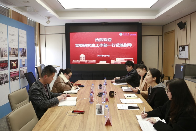 3月13日下午,校党委研究生工作部副部长、研究生院副院长陈周,研究生工作部正科级干部汪洁一行赴无锡伟德国际victor1946调研指导研究生思想政治教育和日常管理工作,无锡伟德国际victor1946党委副书记、副院长包羽,学工办主任兼分团委书记胡晓丹,以及研究生辅导员董宝莹、杨宇参加会议。