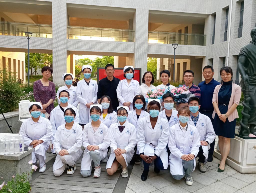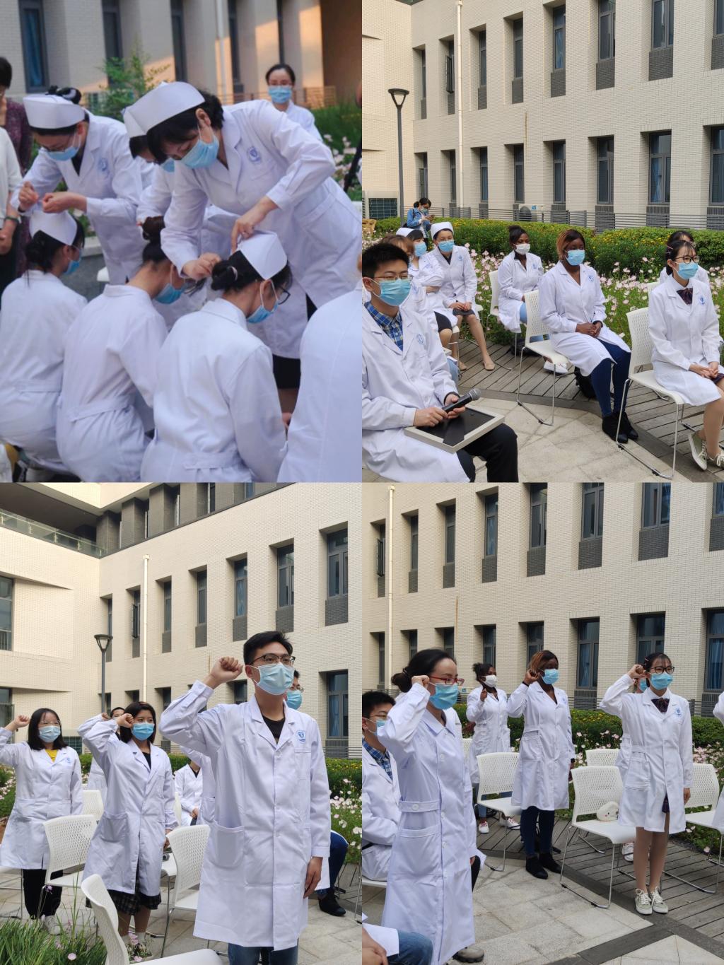 最后,现场同学在两位老师的带领下,分别重温医学生誓词和南丁格尔誓言。恰逢第109个国际护士节,学院也为即将步入临床学习的大二护理学生举行授帽仪式。