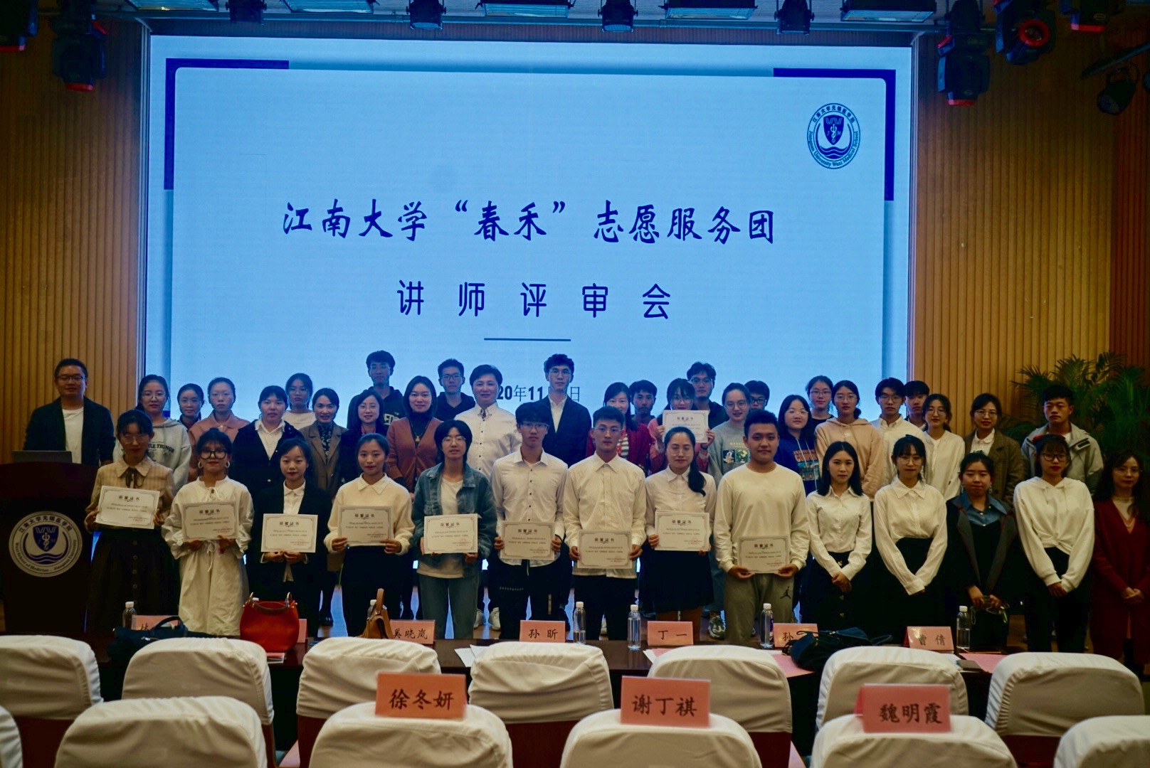 十支团队汇报结束后,无锡市红十字会工会主席孙昕老师对本次评审会作了精彩到位的点评。他提到,“春禾”志愿服务团作为伟德victor1946无锡伟德国际victor1946的品牌项目,大学生能够利用专业优势,主动担当,开展了一系列特色鲜明的志愿服务活动,并取得了一定的社会影响。这次讲师团的评选,紧扣主题、辐射面广,内容涵盖了中小学等各年龄层次,为今后的“春禾”计划做了有力的推进。希望同学们在日后的志愿服务过程中能够不忘初心,脚踏实地,将江南医学人的责任担当传承和发扬下去。随后,嘉宾评委们为所有入选团队颁发了证书,并评选出了5名“春禾”讲师。至此,此次评审会圆满结束。