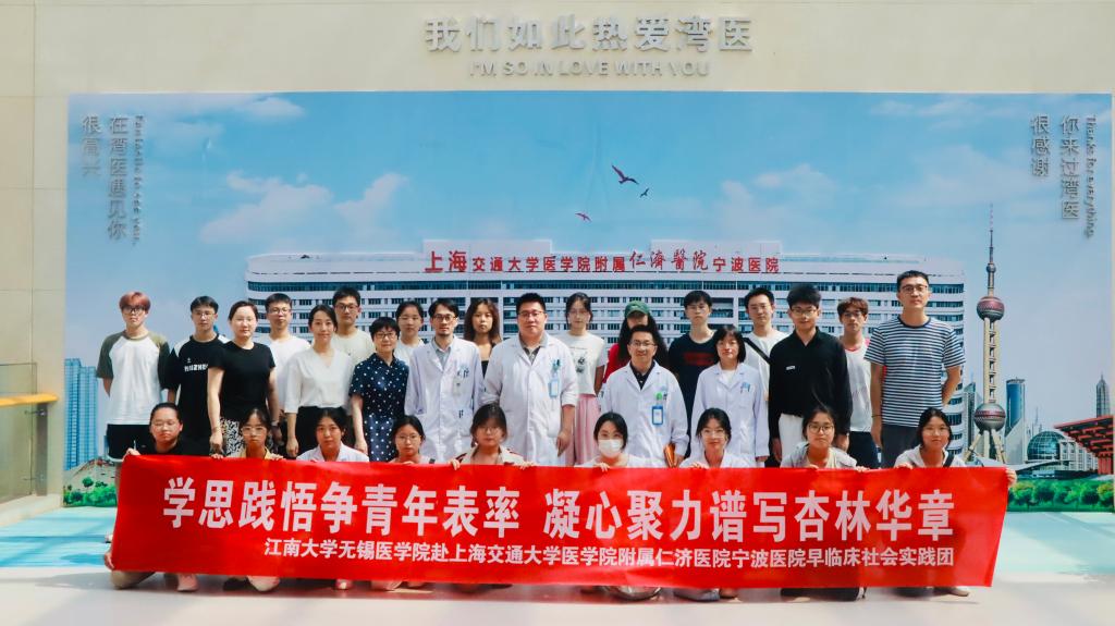 为贯彻落实国家教育部和国家卫健委关于加强医学生临床技能和医德素养的培养要求,践行医学生“早临床、多临床、反复临床”的人才培养理念,引领医学生做有理想、敢担当、能吃苦的时代新人,2024年7月22日伟德victor1946无锡伟德国际victor1946师生一行22人前往上海交通大学附属仁济医院宁波医院,开展为期一周的“思政+学术”早临床社会实践活动,无锡伟德国际victor1946党委副书记、副院长包羽,带队辅导员杨宇参加此次实践活动。