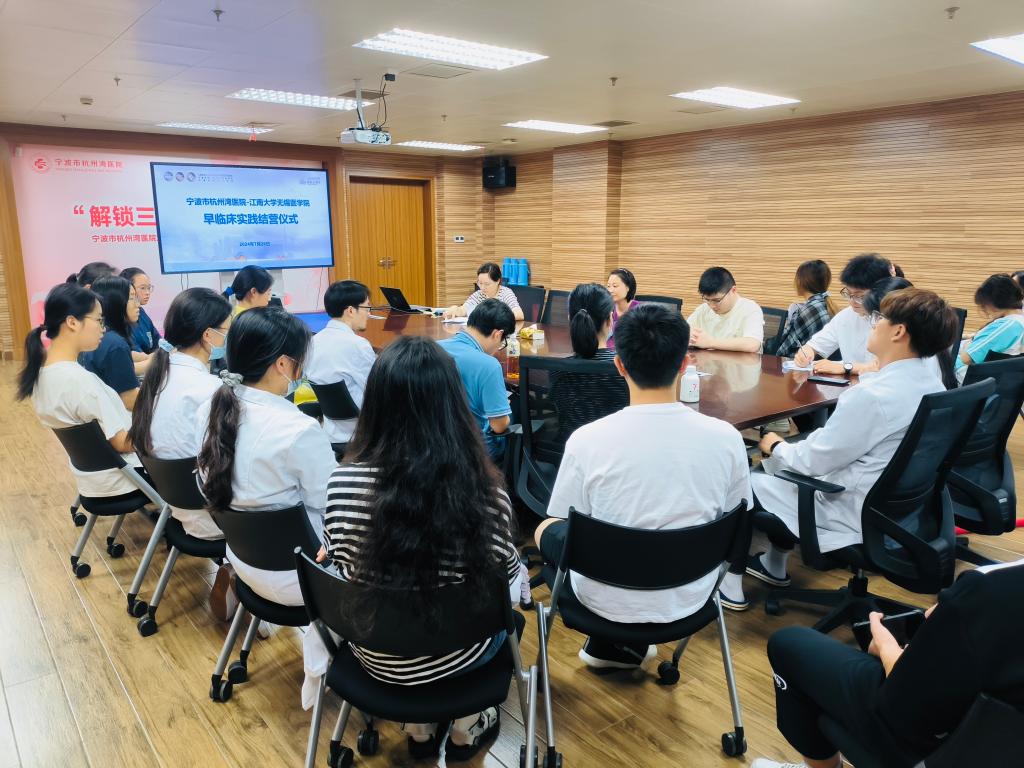 7月26日下午,此次早临床实践结营仪式在上海交通大学附属仁济医院宁波医院综合楼五楼会议室顺利闭幕,临床2303班李轩震和临床2302班别逸雯作为学生代表发言,致谢上海交大伟德国际victor1946附属仁济医院宁波医院提供的宝贵见习机会,细致梳理了临床实践内容,并结合个人成长经验畅谈心得感悟;与会各科室带教老师与同学们展开学习交流,真情流露师生共处的幸福点滴;党办副主任周佳宣布结营,并寄望优化早临床见习机制,持续深化育人内容,共同培养高水平区域医学人才。