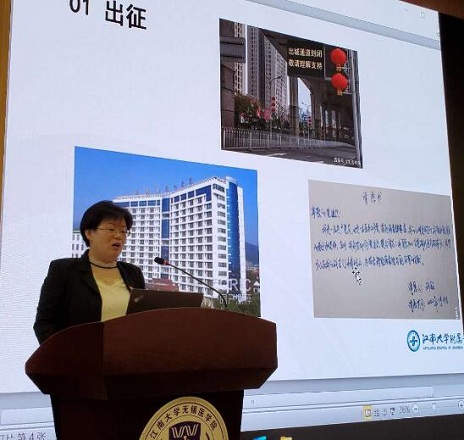 紧接着,刘敏教授声情并茂的授课更是将党课气氛推向高潮。从得知疫情的严峻,到经过激烈的思想斗争,毅然选择写下请愿书,最终奔赴武汉,拉开抗疫故事的序幕。刘教授将作为一名母亲在祖国需要的时候选择舍小家保大家;作为一名女性,褪去动人长发时的不舍与坚决和作为一名医务工作者,无怨无悔穿上厚重沉闷的防护服,忍受身体的不适与病毒抗争的心路历程真实地呈现在同学们的眼前。刘敏教授再忆起那段经历的时候,笑中带泪,她强调在此次抗疫过程中最重要的是信念,是把病人平安送回家的信念;是对我们的党我们的国家必定胜利的信念;是中国人民守望相助的信念;是“冬天终会逾越,春天终将到来”的信念始终支持者自己。在国家人民危急的时刻,作为一名党员,理应冲锋在前,与病毒赛跑,与生命战斗。最后刘教授送给同学们三句话:有志者、事竟成;破釜沉舟,百二秦关终属楚;苦心人、天不负,卧薪尝胆,三千越甲可吞吴!