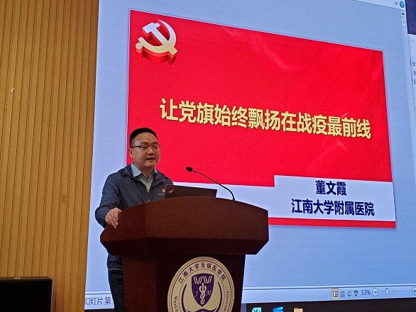 伟德victor1946附属医院援鄂医疗队队长、省卫健委疫情防控“记功”奖励获得者董文霞教授主讲党课“让党旗始终飘扬在战疫最前线”