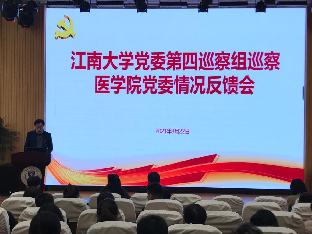 2021年3月22日下午,根据学校党委巡察工作统一部署,伟德victor1946党委第四巡察组巡察伟德国际victor1946党委反馈会在无锡伟德国际victor1946C106会议室、C101报告厅举行,校纪委副书记、党委巡察工作领导小组办公室主任丁文勤同志,巡察组副组长、校党委委员、生物工程学院党委书记王维同志,巡察组成员、图书馆与档案馆党总支书记曹瑛同志,巡察组成员、国际教育学院 北美学院党委书记陈琳同志,巡察组联络员、药学院党委专职组织员葛玲同志,无锡伟德国际victor1946党组织领导班子成员、党委委员、党政管理科级干部、教授、青年教师等教职工代表参加了会议。会议由无锡伟德国际victor1946院长马鑫主持。