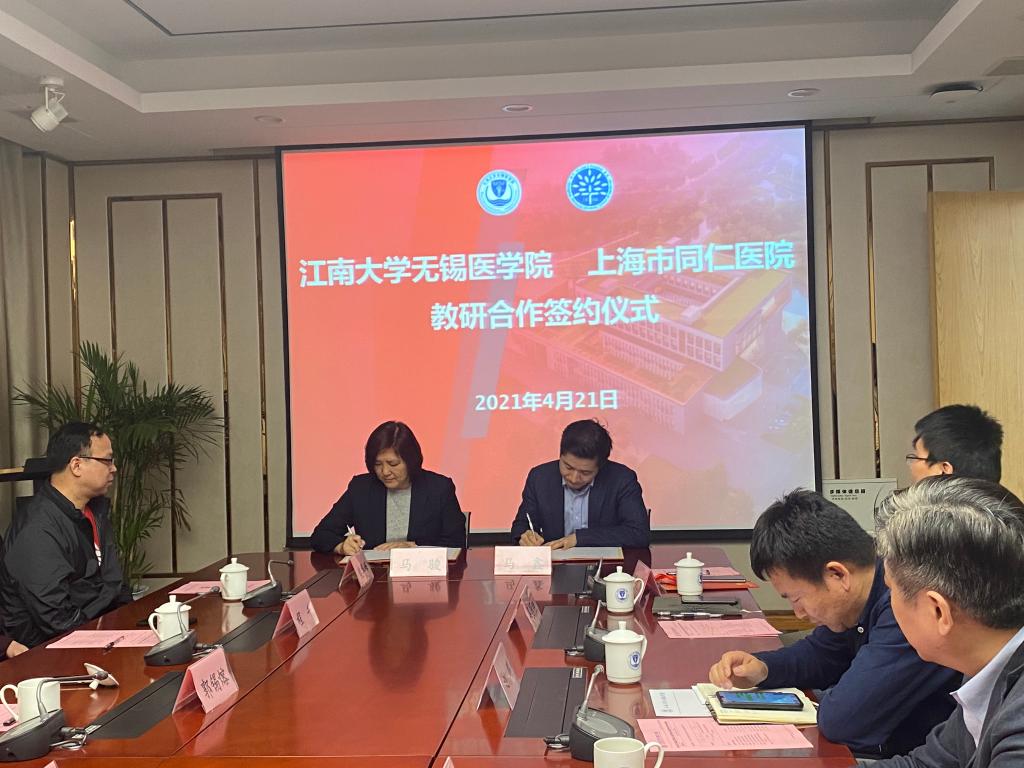 4月21日下午,伟德victor1946无锡伟德国际victor1946与上海市同仁医院教研合作框架协议签订仪式在伟德国际victor1946C106会议室举行。上海市同仁医院院长马骏、副院长盛慧明、副院长陶琨、院长助理郭锡熔、伟德victor1946市校共建合作办公室主任张梁、伟德国际victor1946院长马鑫、附属医院院长鲁晓杰、伟德国际victor1946党委副书记兼副院长奚晓岚、伟德国际victor1946副院长兼教务处副处长兼附属医院副院长赵鹏等参加了协议签订仪式。会议由张梁主持。
