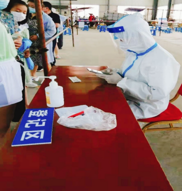 来自江苏扬州的临床2001班的王志新同学在得知社区召集防疫工作志愿者,第一时间报名参加,在经过面试和培训后,已经在8月2日和8月6日进行第一批和第二批核酸采集的登记工作,以实际行动为打赢疫情防控阻击战战贡献力量。