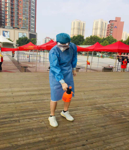 作为疫情防控志愿者,在协助医务人员工作时,他也务必衣着防护服,就像当时支援武汉的英雄们一样,虽然他不用工作十几个小时以上和连续几十天,但是这次他却要在太阳下工作。工作一两个小时,他便全身湿透,将手握拳便能看到无菌手套里气泡随着骨骼潜上潜下,防护镜早已满是汗水。从早上六点半到下午一点,他一直坚守着自己的岗位,无论是消杀工作还是试管标记传递等工作,他都一丝不苟,力求做到最快最好。在工作中,他也切身体会到了一线医务人员的艰辛,医务工作者大多数人都是在烈日里一个个给市民检测,还要上门去一些老人家中测量,甚至还有人排队时突发癫痫,医务人员得第一个冲上前去紧急救援等等。。。。。。这一切都让他感受到了医务工作者的的伟大。