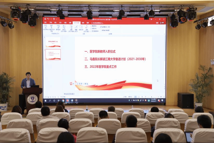 随后,马鑫院长解读了伟德victor1946奋进计划,从 “一个目标、两项行动、三大体系、四项工程、五类指标”五个方面具体阐释了“奋进计划”的内容;对2022年伟德国际victor1946各条线重点工作进行了介绍,并强调医学一级博士点建设是整个一年工作的重中之重,是学院实现高质量发展的关键所在,学院将会举全院之力推进博士点建设工作,希望全院教职工凝心聚力、坚定信心,以实实在在的工作成效助力学院的快速发展。