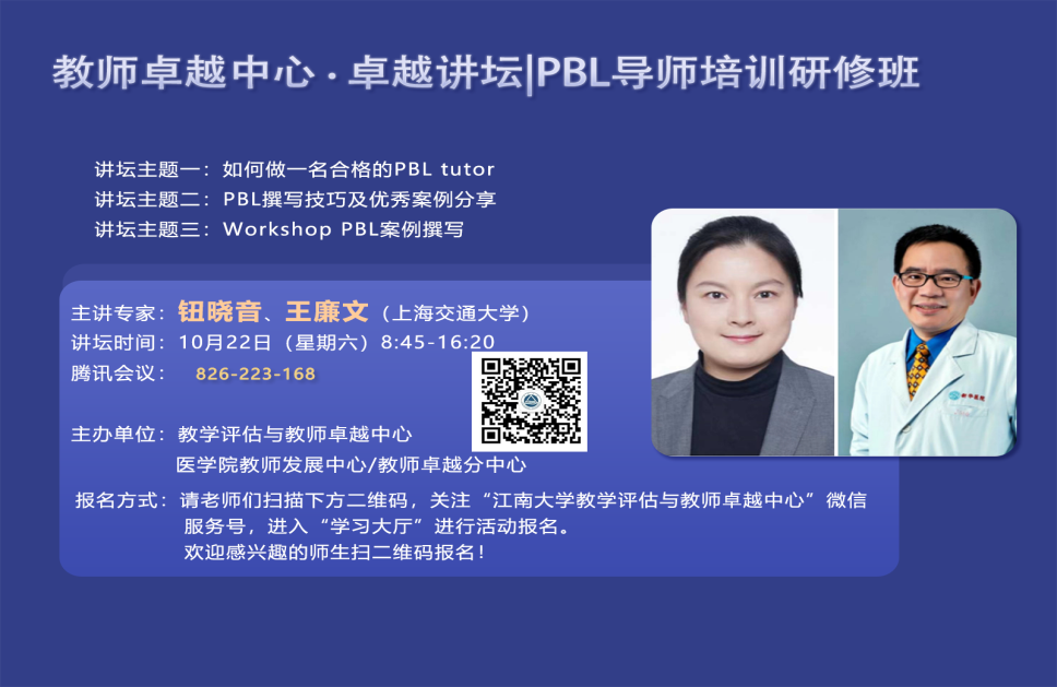 为了进一步加强PBL师资队伍建设,不断提升教育教学水平,10月22日,伟德国际victor1946教师发展中心/教师卓越分中心和伟德victor1946教师评估与教师卓越中心联合组织了第2期PBL导师培训班,来自全校13个学院和附属医院的120余名老师参与了学习。