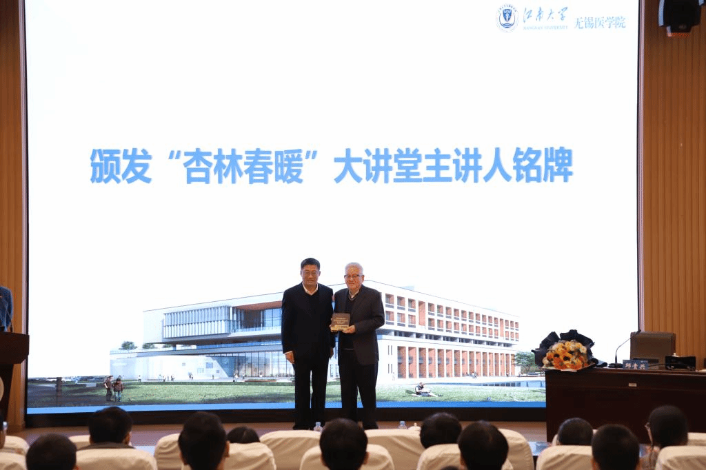 仪式环节,陈卫为邱贵兴颁发了“杏林春暖”大讲堂主讲人铭牌。讲座中,邱院士从学科带头人的重要性出发,从能力素质、人格素质、创新素质以及管理素质四个方面详细阐述了学科带头人所要具备的能力,他表示控制能力、高尚的品德、创新精神、坚持不懈的精神、团队协作精神,学科带头人都缺一不可。他强调,学科带头人是学科建设的中坚力量,优秀的学科带头人要强化责任感和使命感,在医疗、教学、科研、管理及人才梯队建设等方面发挥带动引领作用,从而促进学科发展。邱院士引用多个国内外的典故和案例,分析了学科带头人的作用,阐释了学科带头人承担的任务与责任,与在场师生分享了宝贵的经验。交流互动环节,邱院士为同学们的“小困惑”指点迷津,对同学们的“小目标”给予肯定,他勉励在场学生坚守初心,潜心向学,现场气氛热烈。