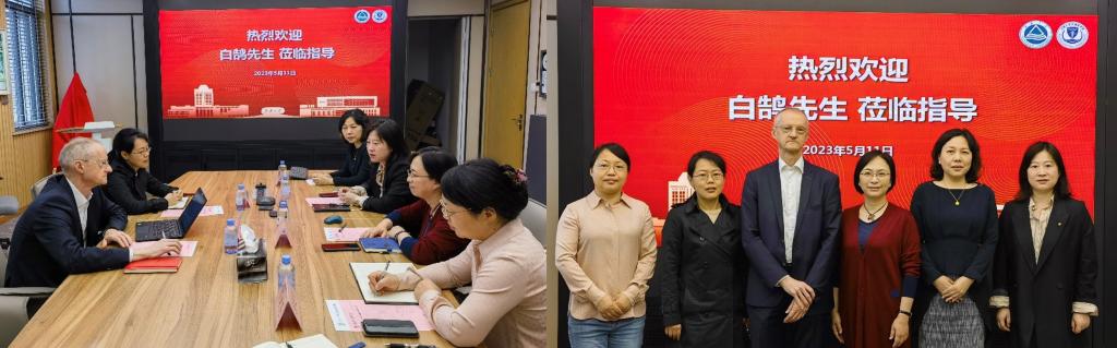 5月11日上午,白鹄副主席在无锡市外办欧非处副处长于瑛应陪同下访问伟德victor1946无锡伟德国际victor1946。无锡伟德国际victor1946党委书记向琪、伟德victor1946国际交流合作处副处长蔡建英等共同参与交流。