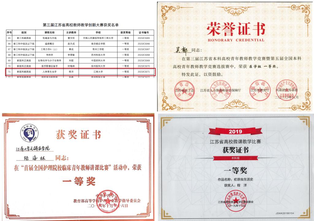 规范有效的师资培训推动了教学能力的提升。近年来,伟德国际victor1946教师在各类教学比赛中屡获佳绩,荣获全国护理院校临床青年教师讲课比赛一等奖1项、全国医学高等院校青年教师教学基本功比赛三等奖1项、江苏省高校教师教学创新大赛一等奖1项、江苏省高校青年教师教学竞赛一等奖2项、二等奖2项、江苏省高校微课教学比赛一等奖1项。